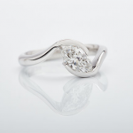 “We styled our design around a Marquise cut diamond. Set with an exceptionally white, eye clean 0.76cts diamond held within the embrace of a simple sweeping shoulders. We chose 100% ethical Fairtrade Gold for the ring, in line with our core values for responsible sourcing, wherever possible.”
