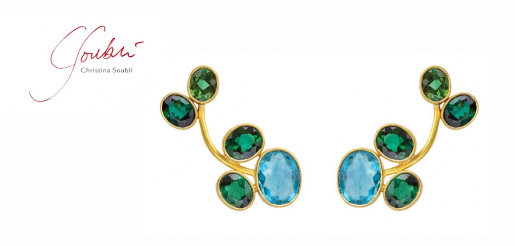 For her creations, Christina Soubli uses primarily 22 carat gold. The purity of the metal as well as the depth of its colour is something that runs throughout her collections. Her use of precious stones as well as gemstones and pearls gives a colourful aura to her pieces, something that also reflects her personality as an artist.
